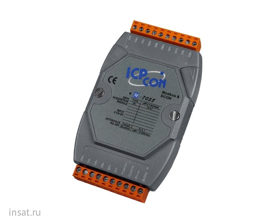 M-7058 - 8-канальный модуль изолированного дискретного ввода 80-250 В переменного тока. M-7058 имеет 8-канальный счётчик 16 бит. Связь по протоколу DCON и Modbus через RS-485.