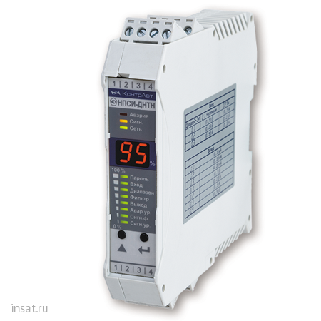 Нормирующий измерительный преобразователь тока и напряжения НПСИ-ДНТН контролирует уровень сигнала в системе. При достижении заданного уровня срабатывает реле. Пользователь может выбрать четыре вида функции сигнализатора: