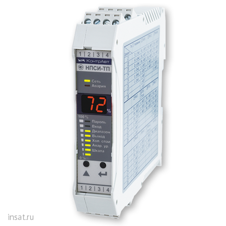 НПСИ-ТП-0-220-М0 – Нормирующий преобразователь сигналов измерительный программируемый, тип входных сигналов – термопары, сигнализация отсутствует, напряжение питания (85…265) В 50 Гц, стандартная модификация