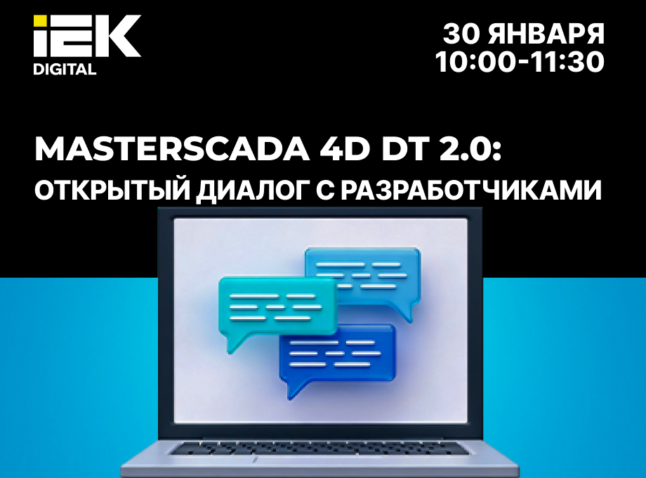 В 2026 году IEK DIGITAL открывает новый формат мероприятий, в ходе которых вы сможете встретиться с командой разработчиков новой среды разработки MasterSCADA 4D DT 2.0, принять активное участие в обсуждении интересующих вас вопросов, а также повлиять на его дальнейшее будущее.