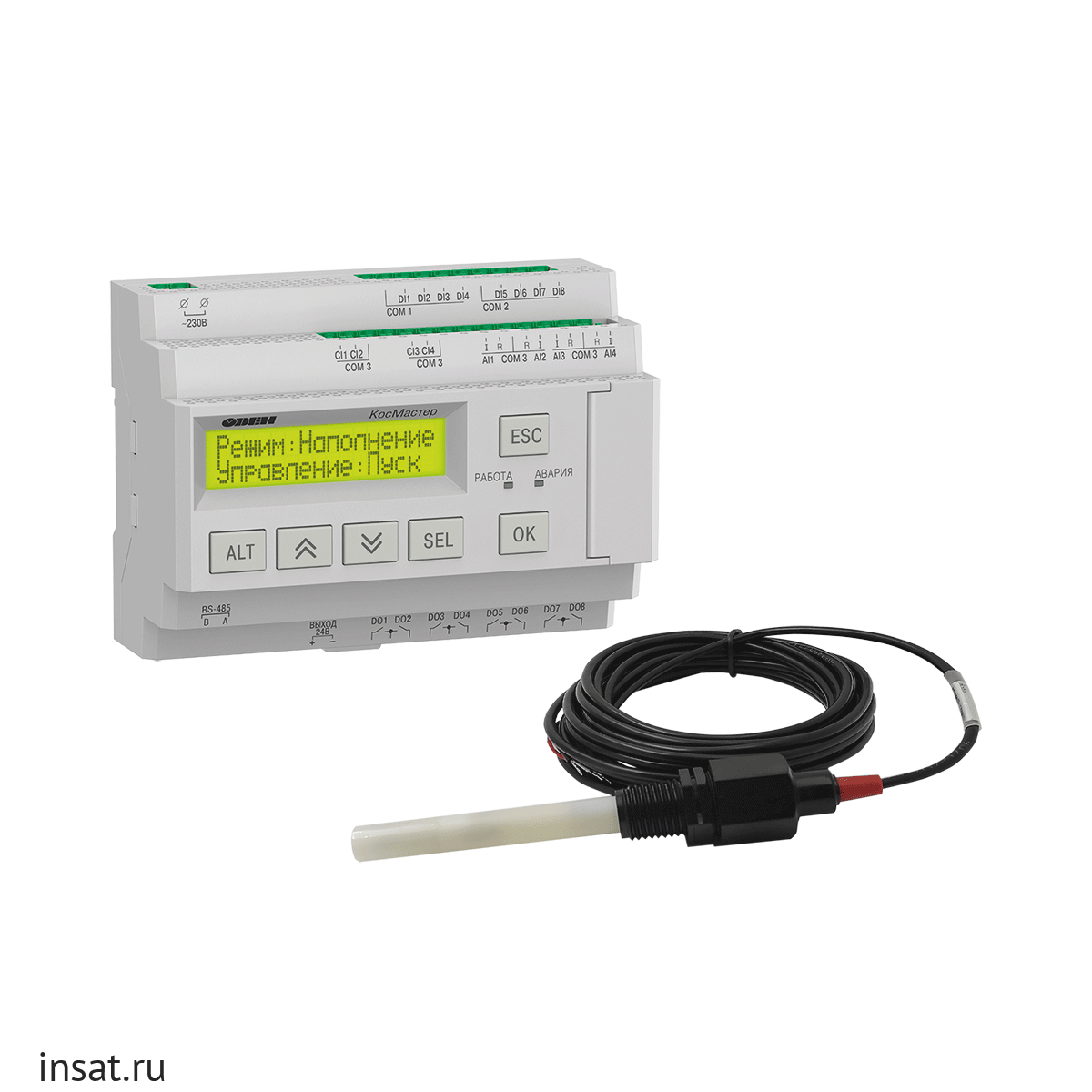 Осуществляет контроль проводимости жидкости по одной, двум или трем точкам. Датчики электропроводности поставляются в комплекте с прибором.