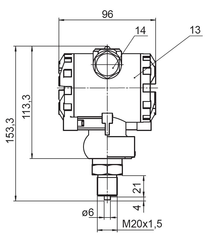 Штуцер для подключения давления M20х1,5 по ГОСТ 2405-88, черт.20