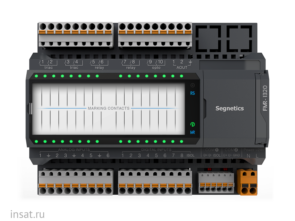 FMR Segnetics – конфигурируемый модуль ввода/вывода. Предназначен для автоматизации инженерных систем зданий и технологических процессов в промышленности. Модуль работает в сетях RS-485 по различным протоколам в качестве Slave устройства.