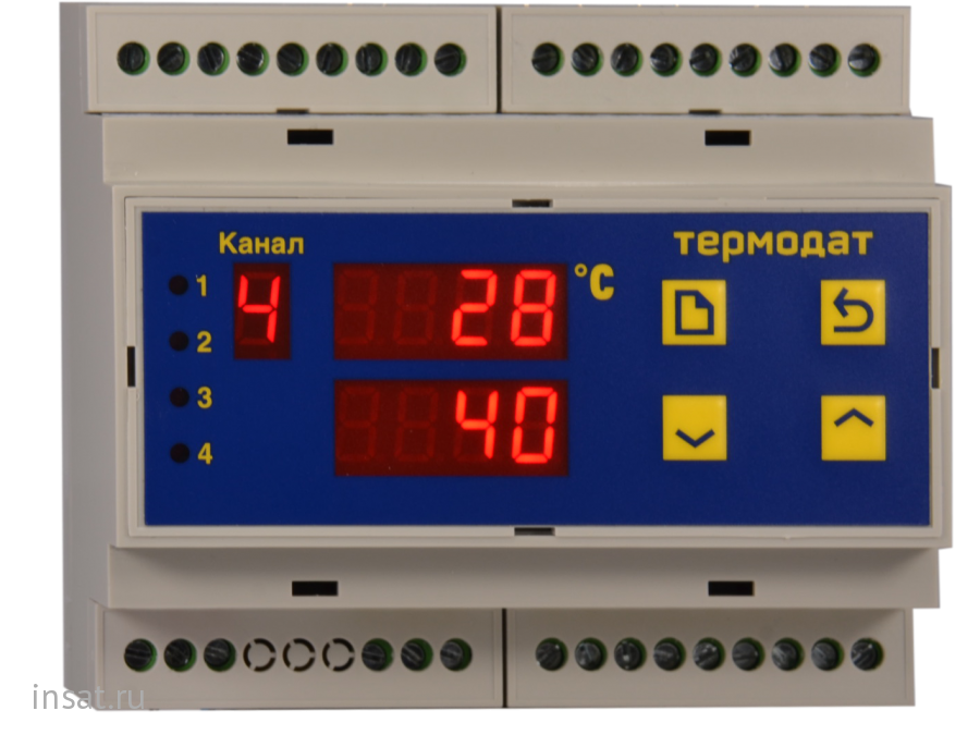 Четырехканальный ПИД-регулятор температуры, аварийный сигнализатор и позиционный регулятор со светодиодными индикаторами, исполнение пластиковом корпусе. Прибор имеет универсальные входы, предназначенные для подключения термопар или термосопротивлений, а также датчиков с токовым выходом. Разрешение 1°С или 0,1°С задается пользователем. Может управлять как нагревателем, так и охладителем. Интуитивно понятное управление обеспечивается 4 кнопками внизу экрана.