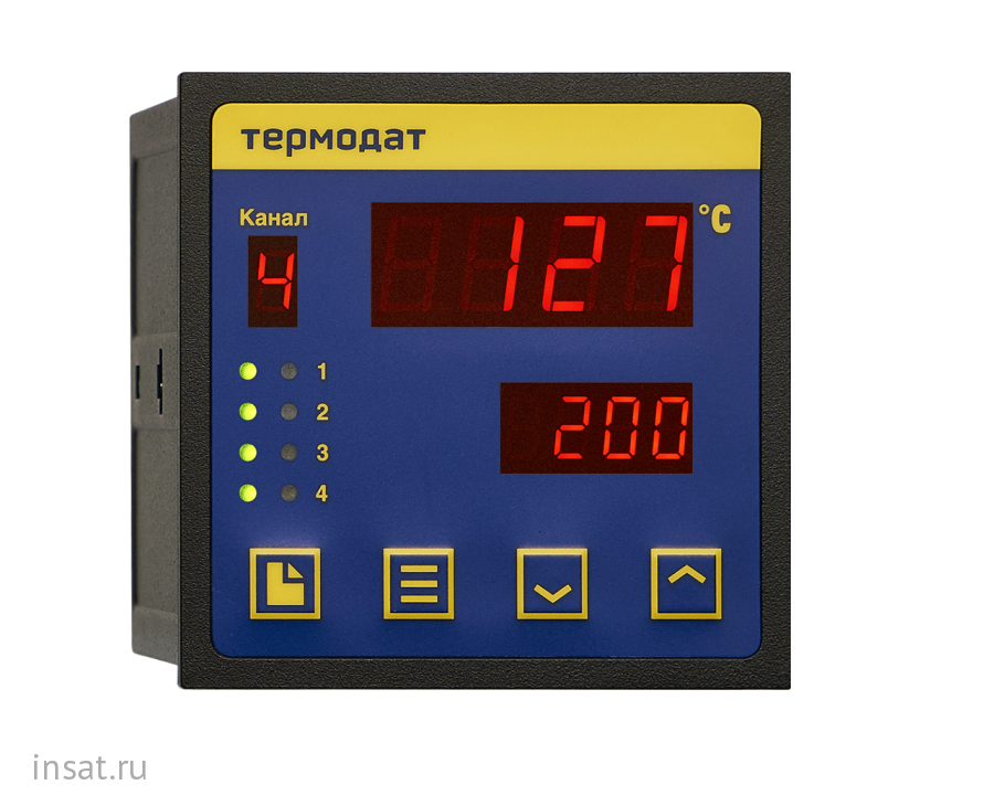 Термодат-13К6/2УВ/1В/2Т/1Р/485/2М - двухканальный ПИД-регулятор температуры и аварийный сигнализатор со светодиодными индикаторами. Прибор имеет два универсальных входа, предназначенных для подключения термопар или термосопротивлений, а также датчиков с токовым выходом. Разрешение 1°С или 0,1°С задается пользователем. Может управлять как нагревателем, так и охладителем. Интуитивно понятное управление обеспечивается 4 кнопками внизу экрана. Прибор снабжен интерфейсом для связи с компьютером по протоколам связи Modbus ASCII или Modbus RTU.