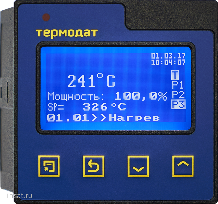 Термодат-16К6-А - одноканальный ПИД-регулятор температуры и электронный самописец с графическим 3,5" дисплеем. Прибор имеет универсальный вход, предназначенный для подключения термопар или термосопротивлений, а также датчиков с токовым выходом. Разрешение 1°С или 0,1°С задается пользователем. Может управлять как нагревателем, так и охладителем. Интуитивно понятное управление обеспечивается 4 кнопками внизу экрана.