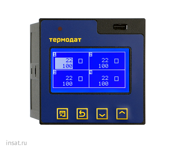 Термодат-17Е6/4УВ/4Т/1Р/485/8Gb/F - четырехканальный программный ПИД-регулятор температуры и электронный самописец, с возможностью регулирования по четырем независимым каналам одновременно, оснащенный таймером, а также USB-разъемом для скачивания архива прибора на Flash-носитель. Методы управления нагревателем: ШИМ, РСП, ФИУ. Исполнение в металлическом корпусе, щитовой монтаж, графический 3,5 дюймов дисплей. Измеренное значение может отображаться как в виде графика, так и в виде текста. Имеется возможность настраивать отображаемую величину (С0, Па, %). Прибор снабжен интерфейсом для связи с компьютером по протоколам связи Modbus ASCII или Modbus RTU и архивной памятью для хранения измеренных значений.