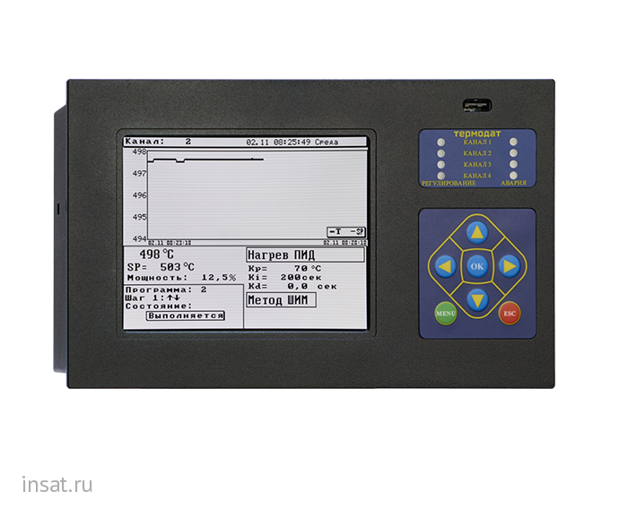 Термодат-18Е6/1УВ/1В/1Т/1РС/3Р/1А/485/8Gb - одноканальный программный ПИД-регулятор температуры и электронный самописец с графическим 6" дисплеем. Прибор оснащен USB-разъемом для снятия архивных данных на Flash-носитель. Прибор имеет универсальный вход, предназначенный для подключения термопар или термосопротивлений, а также датчиков с токовым выходом. Разрешение 1°С или 0,1°С задается пользователем. Может управлять как нагревателем, так и охладителем. Методы управления нагревателем: ШИМ, РСП, ФИУ. Прибор снабжен интерфейсом для связи с компьютером по протоколам связи Modbus ASCII или Modbus RTU и архивной памятью для хранения измеренных значений. Интуитивно понятное управление обеспечивается 7 кнопками справа от экрана.
